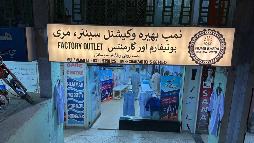 In Sep 2025 a shop has been rented by NRWS to sell the school uniforms and ladies fashion dresses prepared by NBVC students and also by other local tailors of Numb Bhera. This retail outlet is meant to increase the returns to the men and women actually engaged in the stitching work which was previously being lost in wholesale deals.