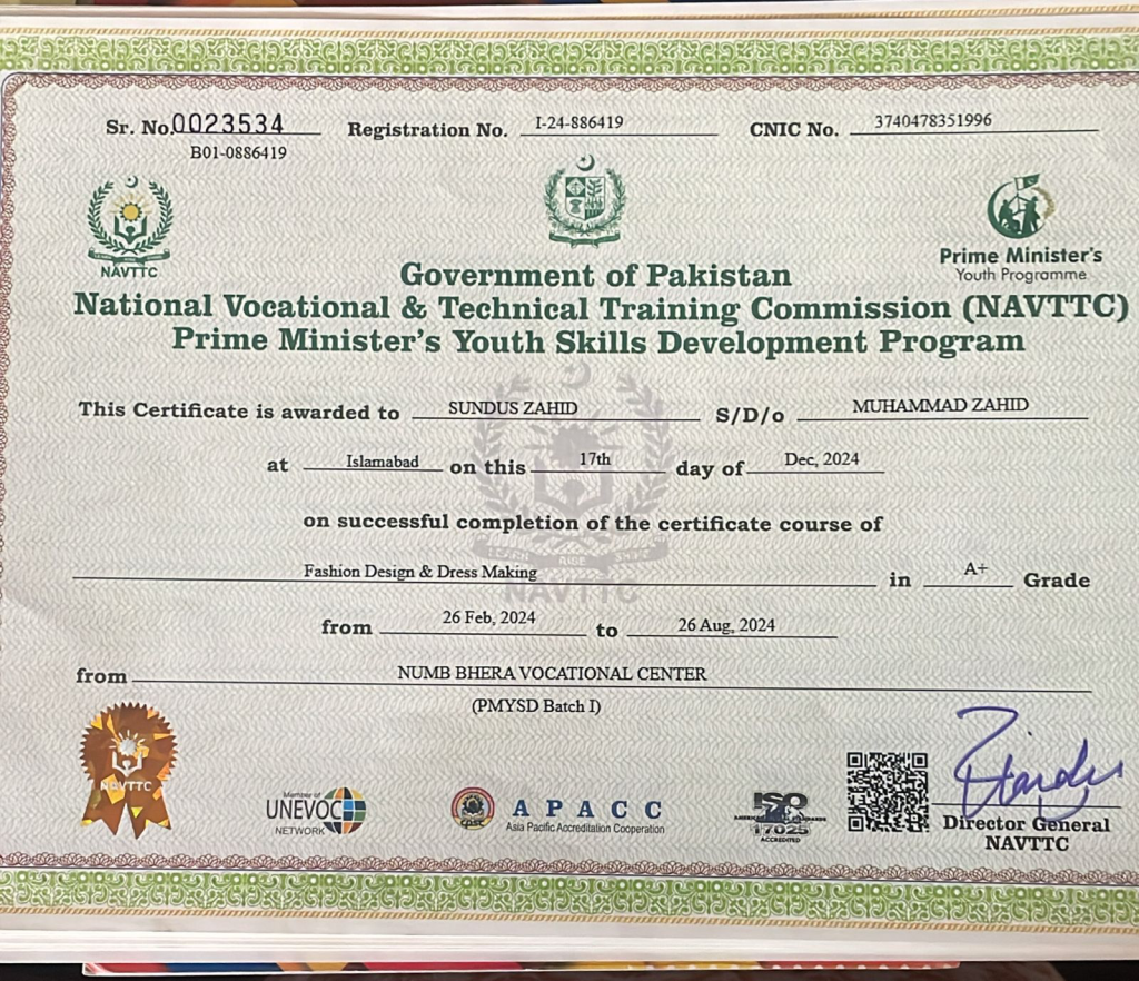 - Vision: To create a business ecosystem for the youth of Murree District based on dressmaking and Information Technology (IT) skills imparted by competent teachers in a well-equipped, not-for-profit training center, duly accredited by NAVTTC.